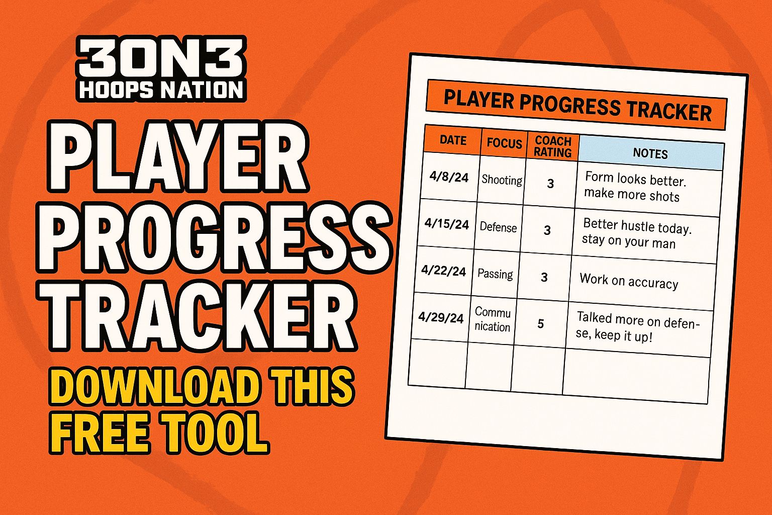 This tool is designed to help you (and your players) clearly see improvement in skills like shooting, passing, defense, or communication. Each week, you can: